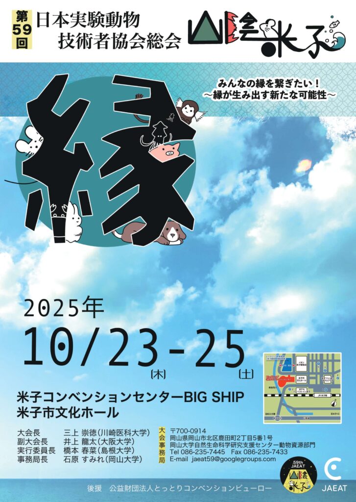 詳しくは学会ホームページまで第59回日本日本実験動物技術者協会総会